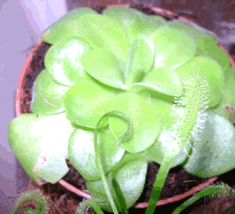 Весна, моя жирянка наконец то стала выделять ловчие капельки и довольно сильно разлопушилась. Я знаю, что без цветов сложно определить. и всёатки, может кто-нибудь сказать, хотя бы приблизительно, вид моей жирянки? Самое интересное, стоило появиться капелькам - сразу же прилипла какая-то мошка, главное и небыло их вроде, сам по всей квартире на корм маленьким росянкам искал.