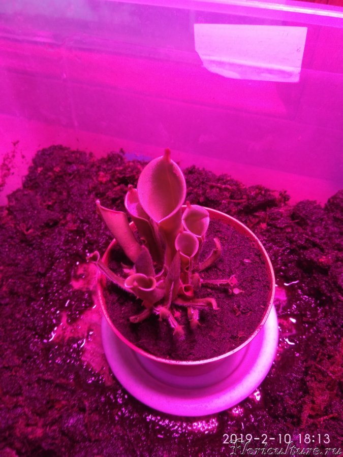 Давайте немного разберем написанное, действительно гелиамфору сразу после покупки нельзя ставить на солнце, особенно на южные подоконники, обгорают очень быстро. Досветка лампами - приобретите диодную фито лампу от 15Вт, одной будет достаточно для растения, 40 Вт это слишком много, растение начнет обгорать, да и нет смысла покупать линейную фито лампу 40 вт для 1 растения. Люминисцентная холодного свечения не даст Вам необходимого спектра чем 1 фито лампа. Расстояние 10-15 см это очень близко. Смотрите по состоянию растения. Таскать растение по квартире тоже не следует, лучше сразу поставьте его на окно, притеняя его от солнечного света. Я использую горшки с авто поливом. Грунт я использовал серамис классический + верховой торф 1:1.