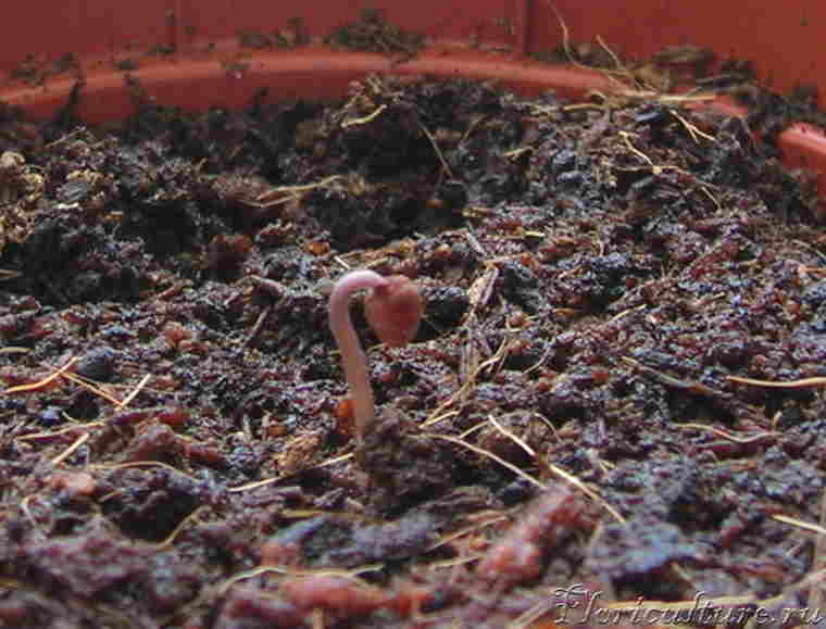 Сажаешь семена неглубоко (кто-то замачивает,но я не делала этого),лучше сразу по разным стакачикам,а потом в плотный темный непросвечиваемый пакет).Все это дело ставишь в прохладное (16-18 градусов)место и забываешь.Недели через две надо глянуть,а то вдруг чего...Прорастают в ближе к 30-40 дням,но могут и дольше.