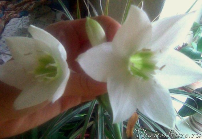 Мне на день роденье подарили большой эухарис и через пару недель он зацвел