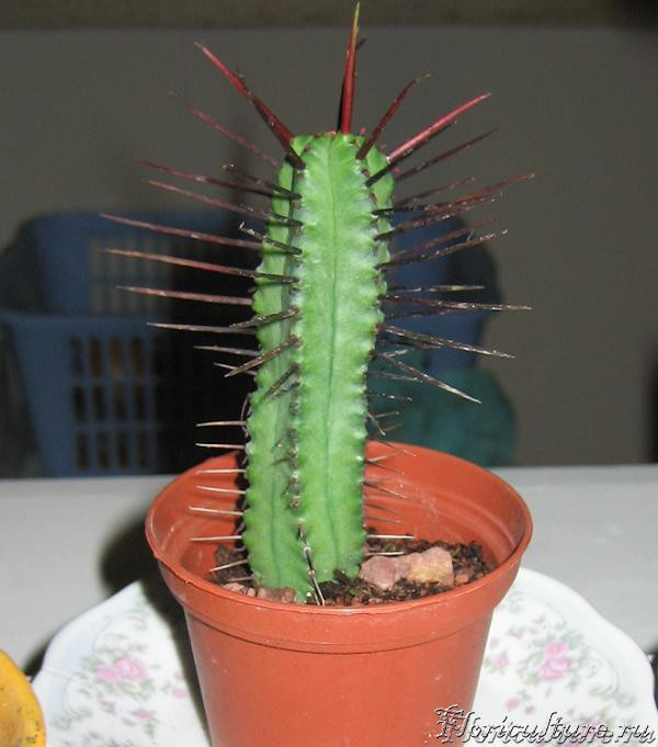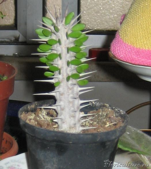 Гилоцереус треугольный (Hylocereus triangularis) - подвой; Молочай молочный гребенчатый (Euphorbia lactea cristata) - привой